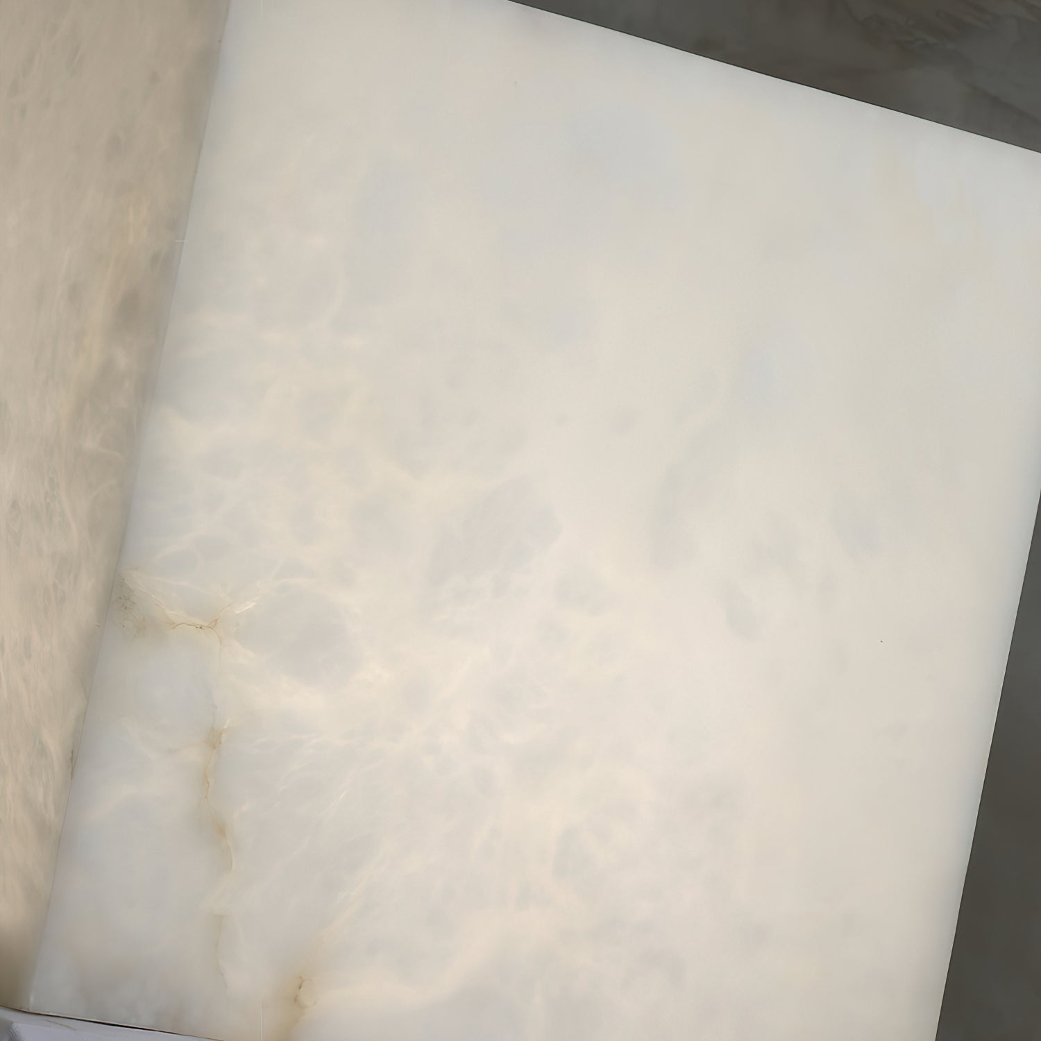 Prized for its snow-white colour, alabaster was often used by the ancient Egyptians in sarcophaguses, temples, and most notably, sculptures. The stone is translucent which gives it a beautiful luminosity, with earthy brown and black markings often visible in the stone. The Alabaster Cube side table is fashioned from cut sheets of natural alabaster, seamlessly joined to create a feeling of permanence and solidity, and then polished to achieve a beautifully smooth surface. LED lighting in the base creates a gentle, ethereal glow.