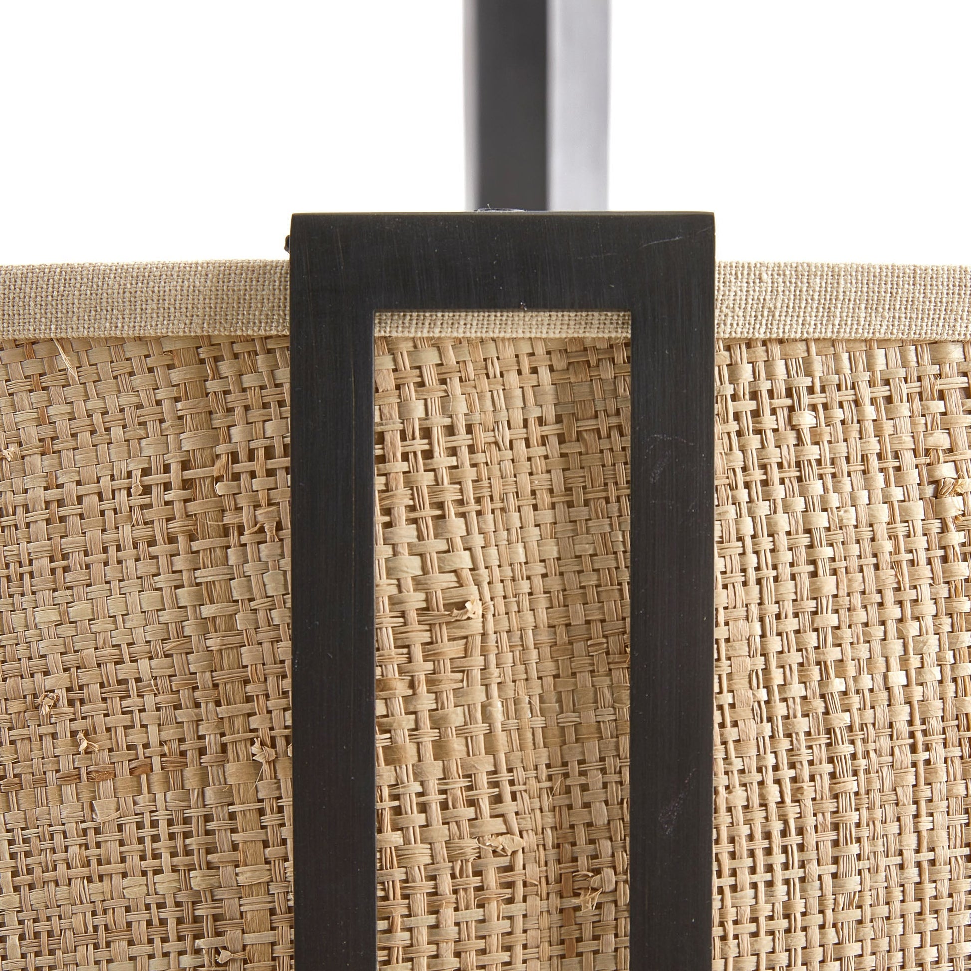 Traditional menswear accessories add a tailored twist to our classic pendant light finished in brass. A circular shade of natural grasscloth is cuffed with metal accents that recall mid-century tie clips. Damp-rated, although limited covered outdoor conditions may affect finish.