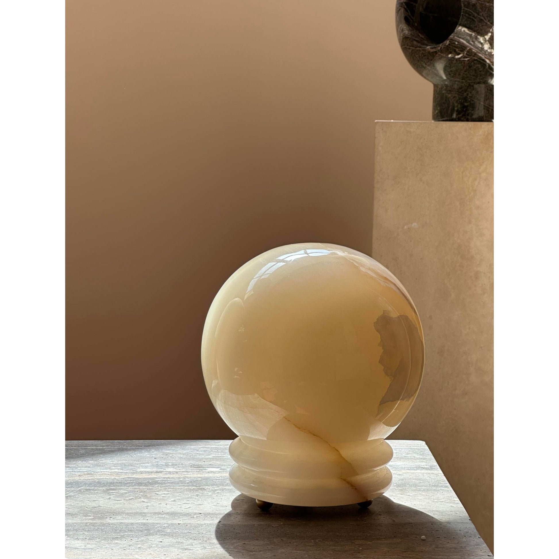 Crafted from turned natural jade, each of our globe Ayesha table lamps is unique to the next in colour, depth and contrast. Mirroring the 1970s interiors, the spherical design sits on a ribbed base with a glossy finish.
