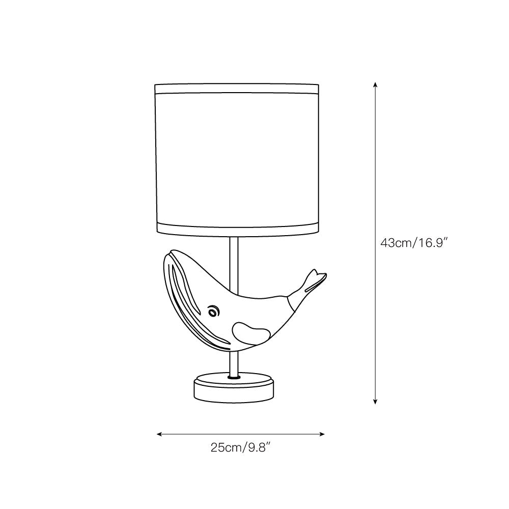 Whale: D 25cm x H 43cm / ∅ 9.8″ x H 16.9″.