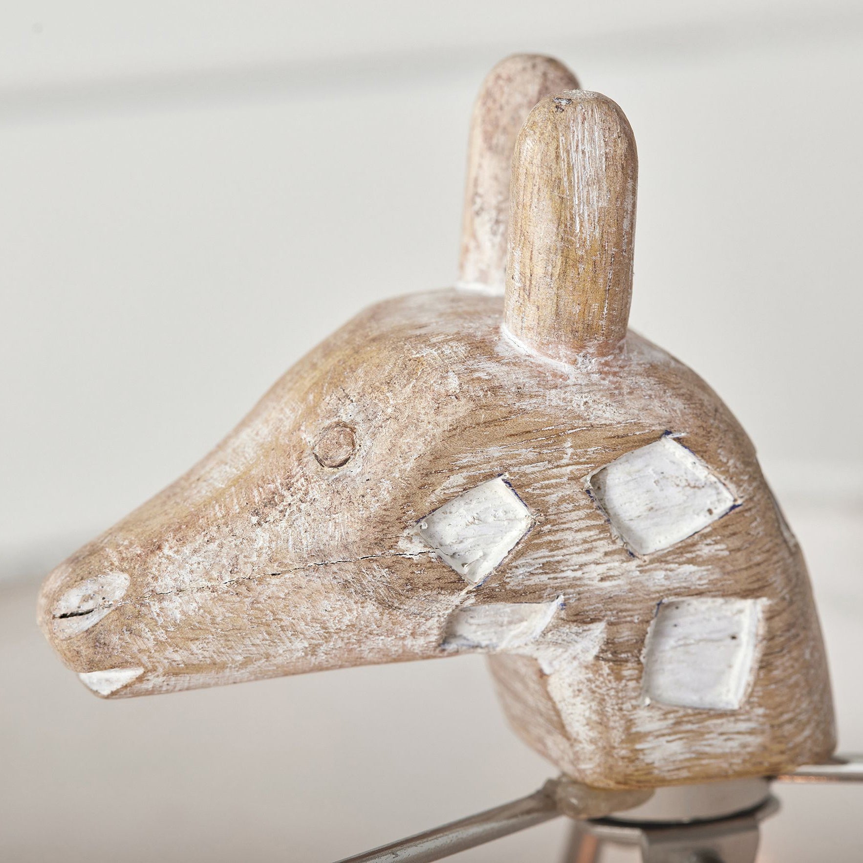 Give your little one something to trumpet about with our Animal lamp, ideal as a reading light on their bedside table. The base is carved of durable solid wood in a child-safe, hand-applied rustic finish and beautifully balanced by a natural fabric shade.