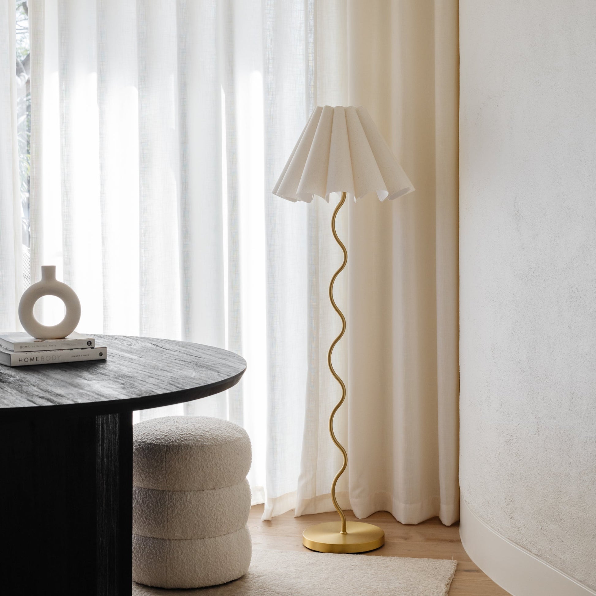The Cora Floor Lamp features a sleek metal body paired with a delicate paper lampshade, merging durability with subtle elegance. Its thoughtfully designed color palette highlights rich metallic tones and natural textures, adding refined accents that enhance the ambiance of any sophisticated interior.