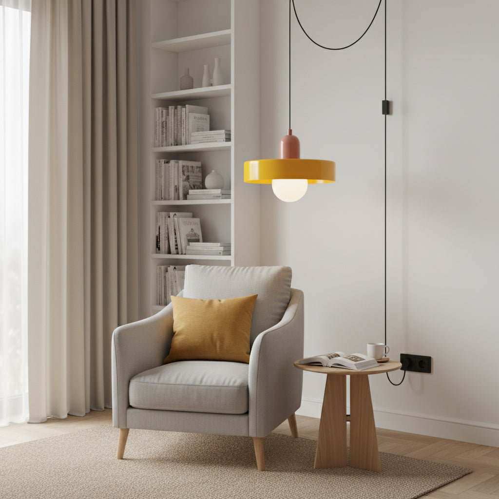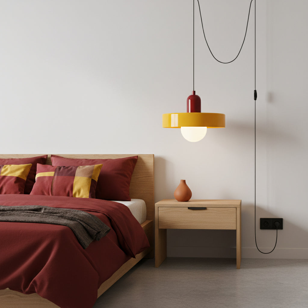 Transform your living space with the sleek and modern Disc Orb Swag Lights. Crafted with brim-like glass and a frosted globe diffuser, this light emits soft, ambient illumination. Made of durable metal and glass, it's available in a range of colors to complement any room. Perfect for the living room, dining room, or bedside.