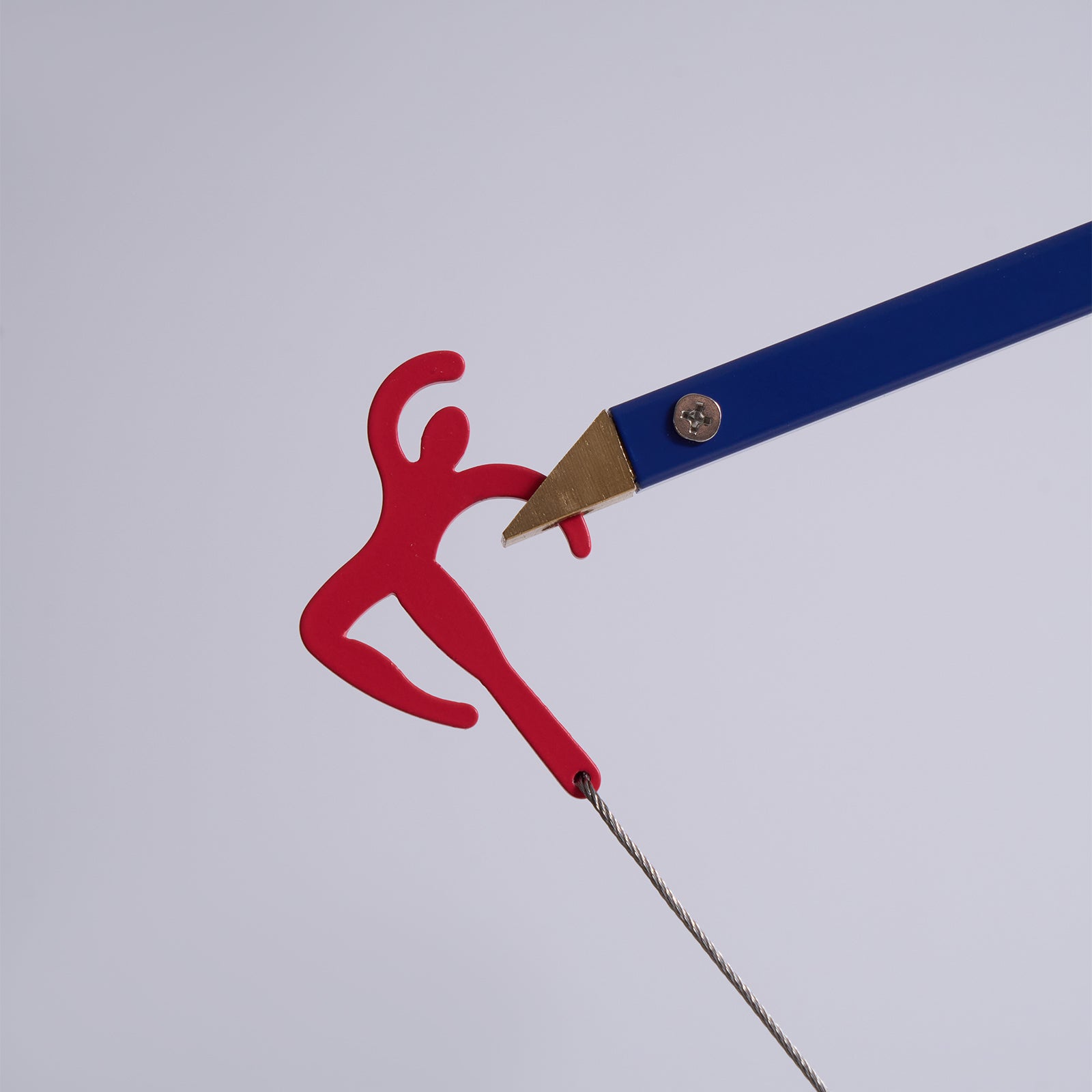 The “colourful” versions of the Ettorino lamps feature an elegant combination of primary colours, mixing blue, yellow and red. Preceded by the development of an innovative patented system, these new articulated lamps are characterised by a simple, rigorous design featuring surprising details. The signature feature of all the lamps is a functional detail in the shape of a red, dancing figure. Ettorino T has been designed as a desk lamp, to offer suitable lighting for work surfaces thanks to the possibility to move and rotate it.