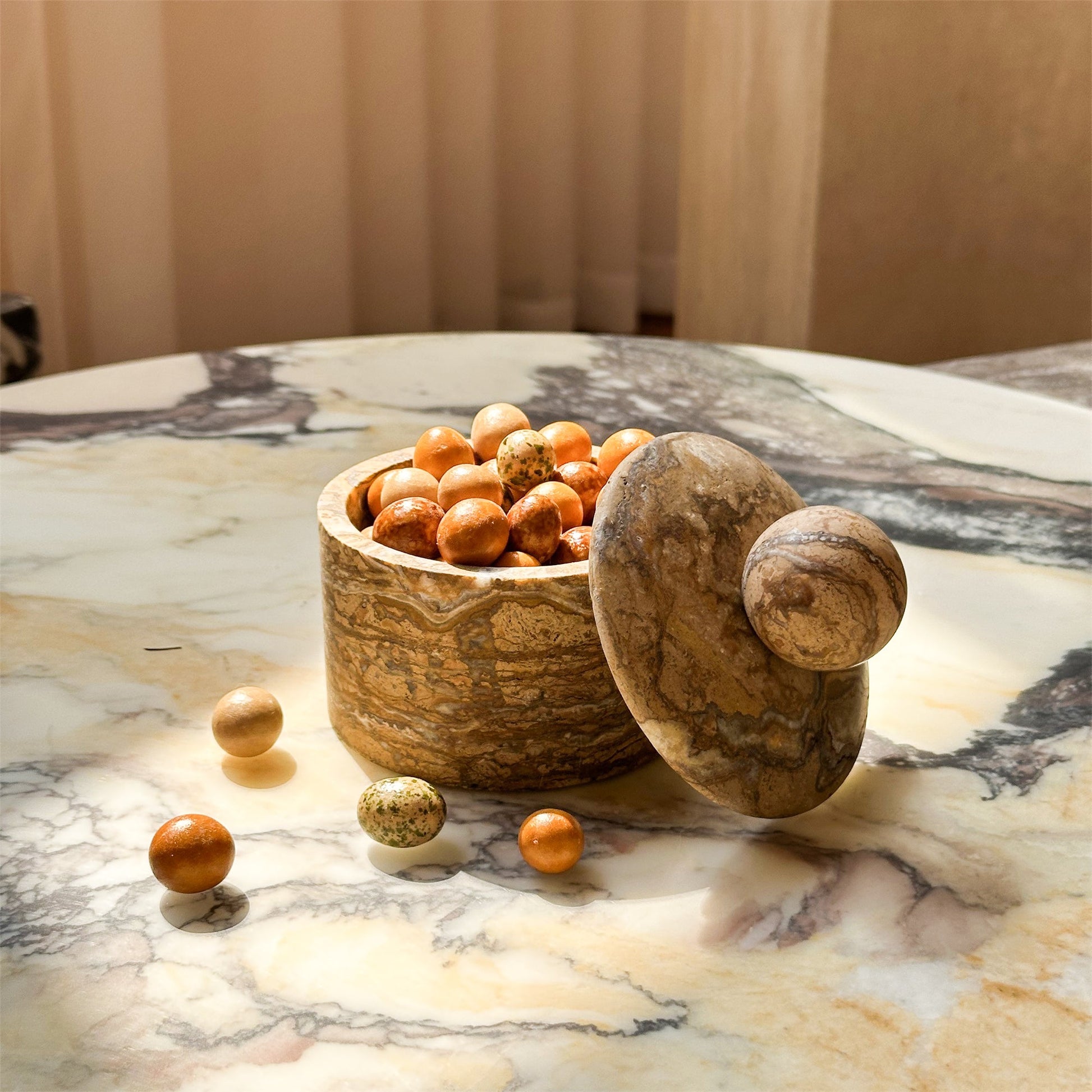 Discover elegance and functionality with our sugar bowl. Crafted with exquisite marble, this timeless piece seamlessly blends style with utility, elevating your kitchen decor while keeping your butter fresh and easily accessible. Explore our collection today and add a touch of luxury to your dining experience.