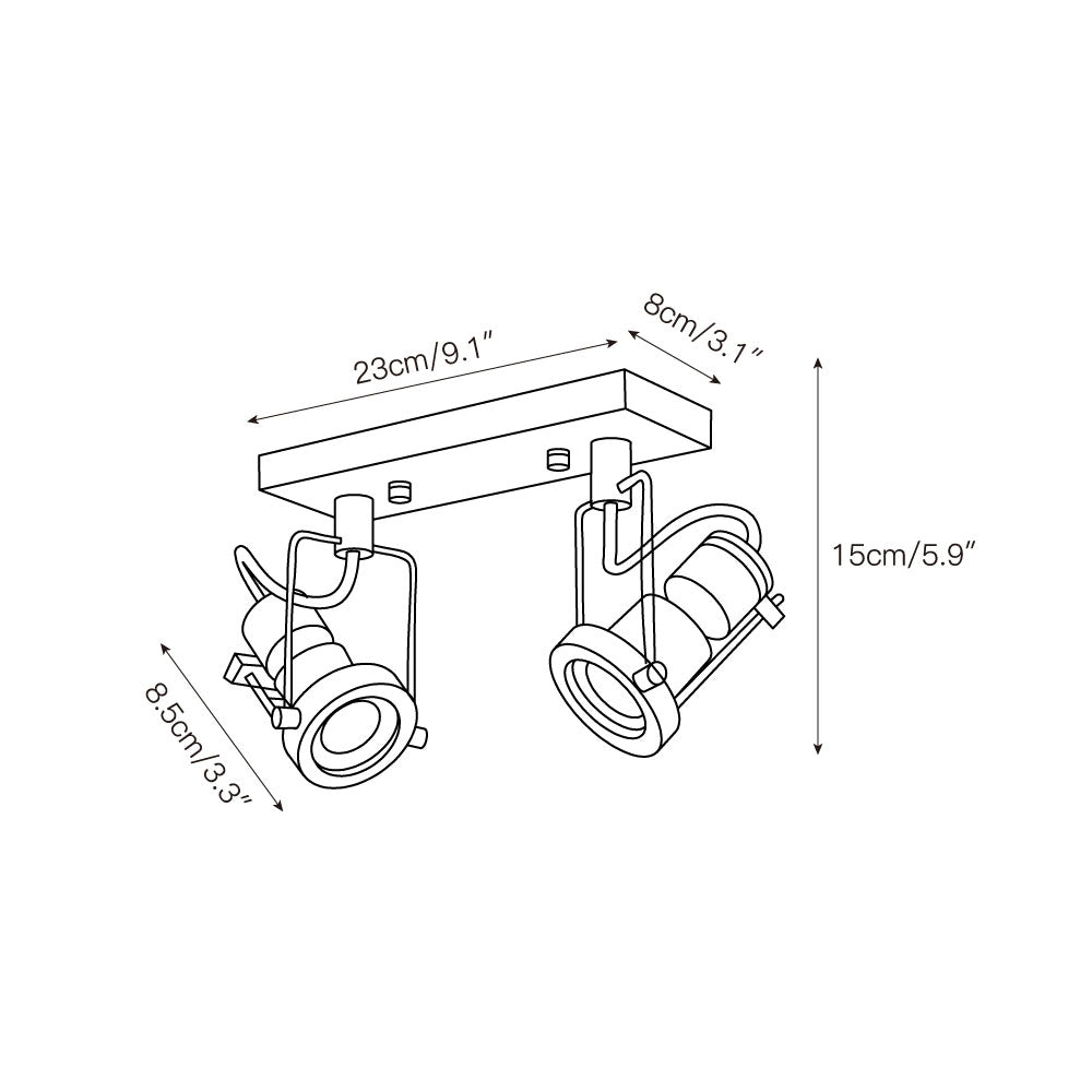 2 heads L 23cm x W 8cm x H 15cm / L 9.1″ x W 3.1″ x H 5.9″.
