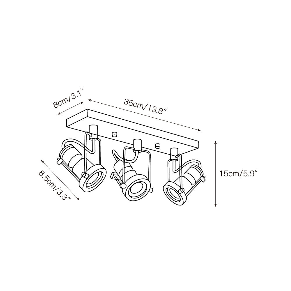 3 heads L 35cm x W 8cm x H 15cm / L 13.8″ x W 3.1″ x H 5.9″.