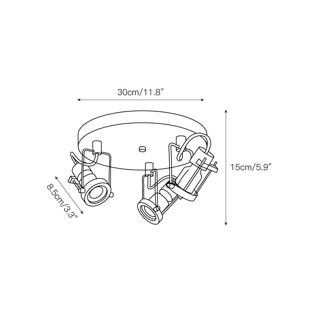 3 heads D 30cm x H 15cm / ∅ 11.8″ x H 5.9″.