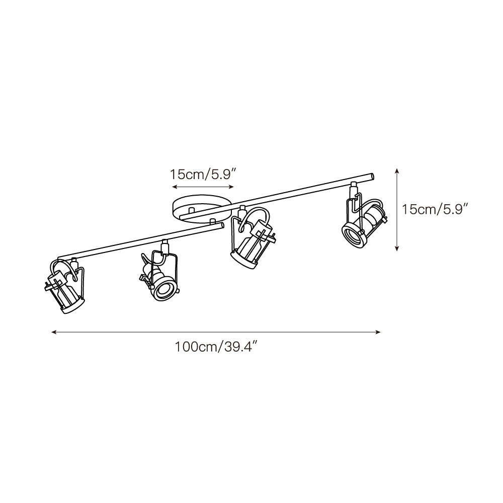 4 heads L 100cm x H 15cm / L 39.4″ x H 5.9″.