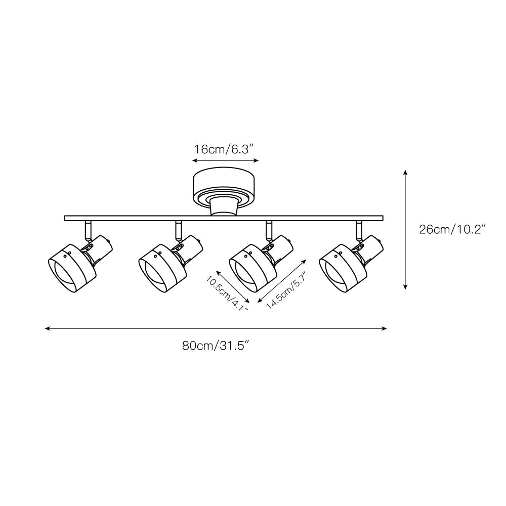 This Nordic Cylindrical 4-Light Spotlight is crafted from high-quality metal for superior durability and corrosion resistance. The surface is finished with high-temperature paint for an even color and high-gloss. Featuring adjustable angles up to 360°, the lamp is fully flexible to create the perfect beam and reach the desired brightness.