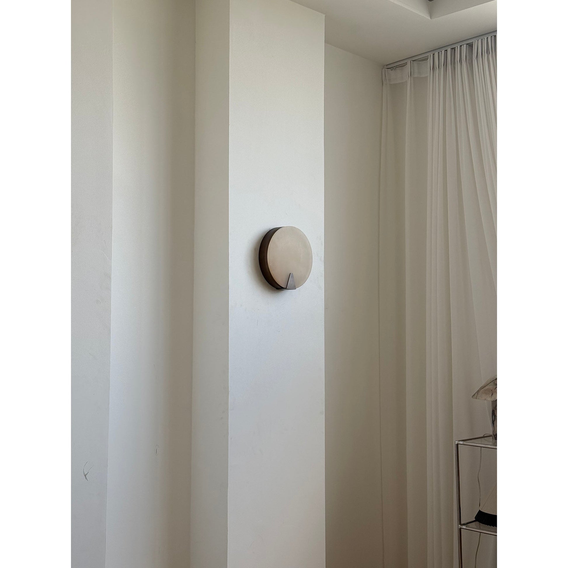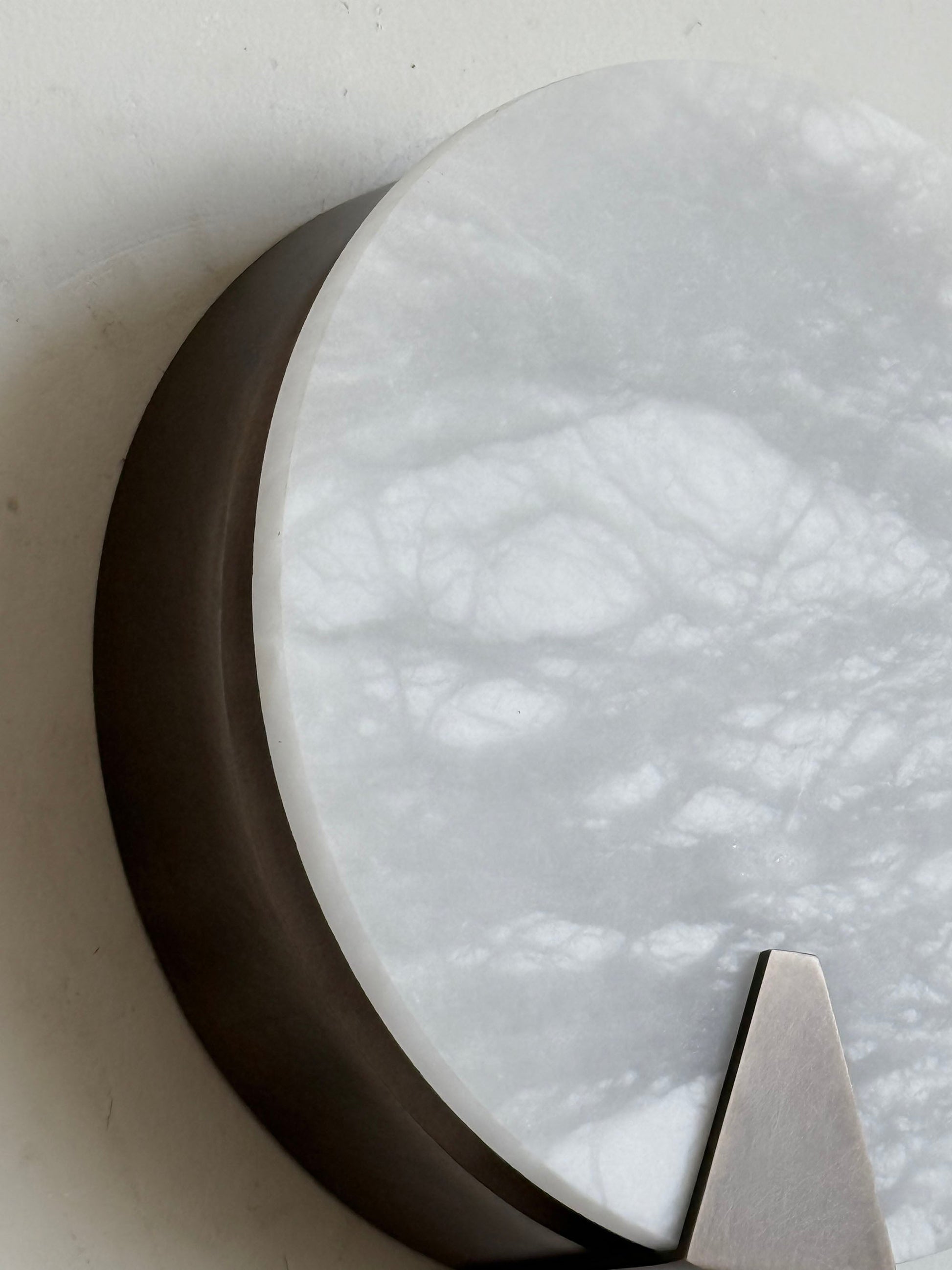 The Ophelia Alabaster Round Sconce features a sleek stainless steel body paired with a delicately translucent alabaster lampshade, offering a refined balance of modern elegance and timeless warmth. Ideal for elevating living rooms, hallways, or bedrooms, it seamlessly blends artistry with functional lighting.